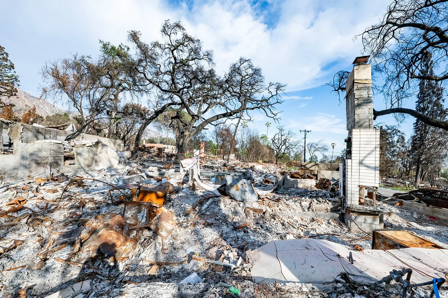 I monitored the fire all night and eventually was awake for 36 hours straight. Just before midnight I met my first fire victim while at a walk-up window ordering food. The man behind calmly told us his Upper Hastings Ranch (Pasadena) home had just burned down. That amplified how real it was, and I sensed his shock. Later I drove around the neighborhood and watched TV to see the progress of the fire. Two homes on my mom’s street burned but luckily the closest was two blocks away. The most ominous thing that night was standing outside and being able to hear the booms from homes collapsing in Altadena. The winds died down before sunrise when I headed out to photograph more. I saw people fighting to save their homes, very few fire trucks, and fires slowly consuming homes. The Eaton Fire killed at least 17 people and destroyed 9,400 structures and damage at least 1,000; I know so many people effected.