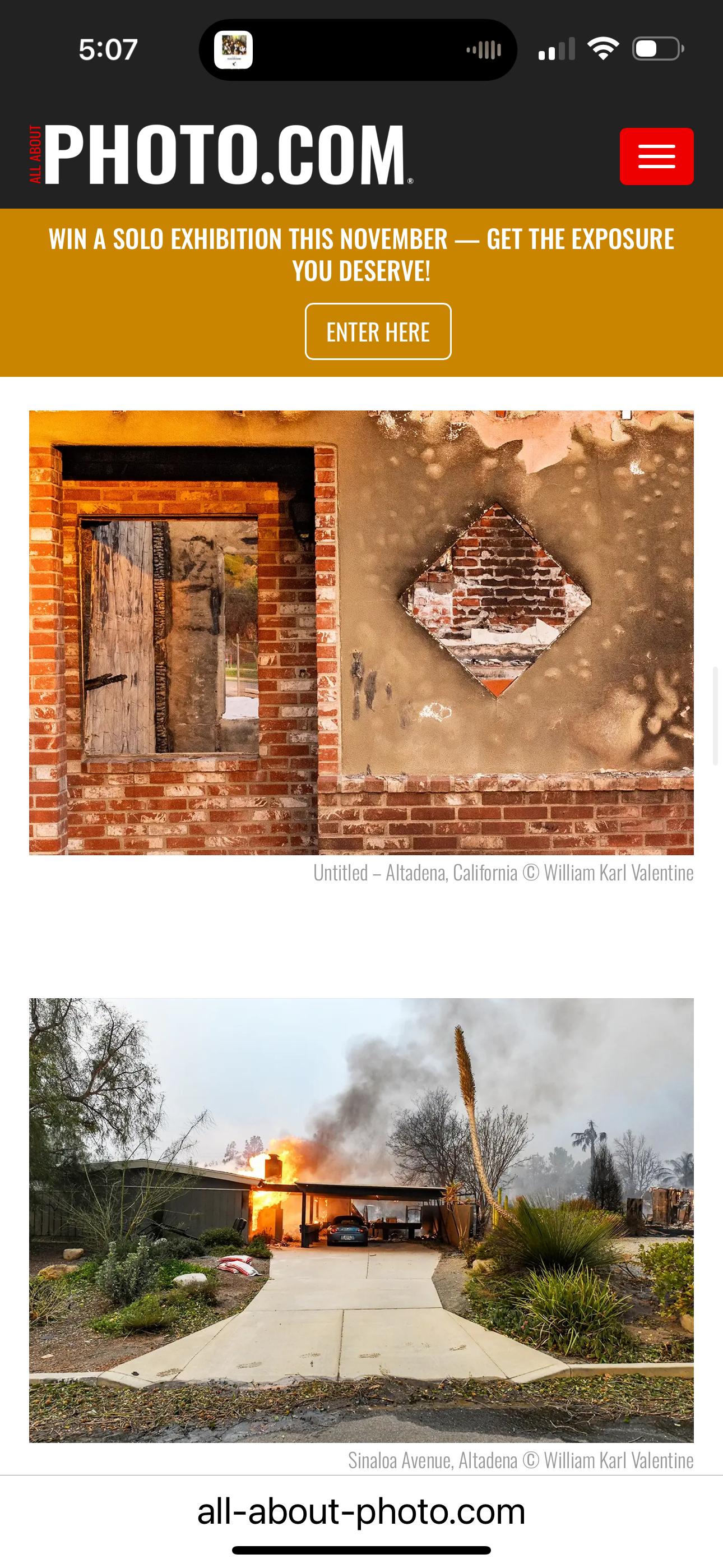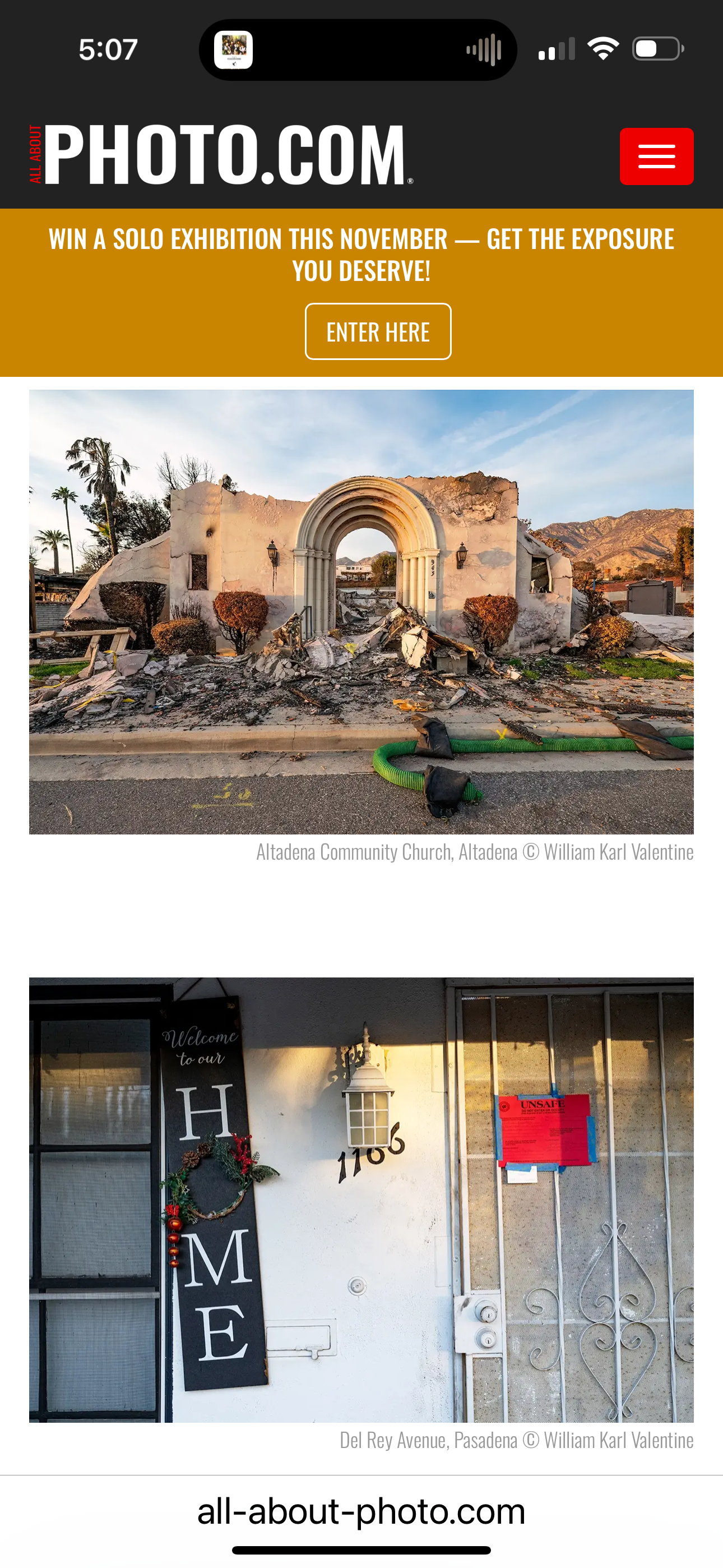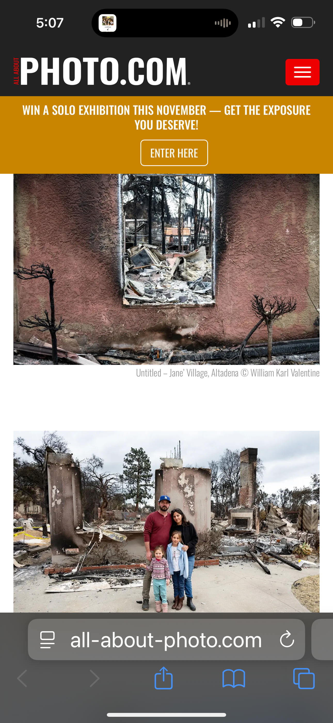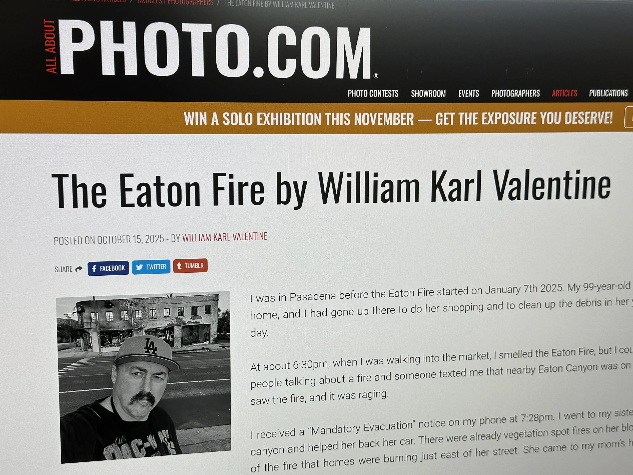 I know I have said this a lot, but I know I was at the right place at the right time for a reason, so I am committed to telling the story of the Eaton Fire and the impact it had on so many people. I am always thankful when I can exhibit work in a gallery or get my images showcased online, especially on an outstanding photography site like All About Photo.com.
